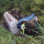 De acordo com a Polícia Militar Rodoviária, por volta das 05h30 equipes foram acionadas após a central do 28º BPM receber três ligações informando que um caminhão-tanque havia caído em uma ribanceira às margens da rodovia.
