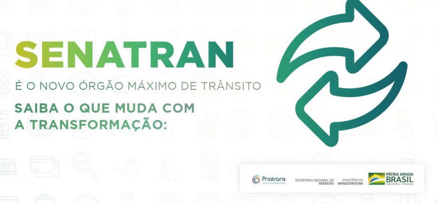O Departamento Nacional de Trânsito (Denatran) passa, a partir de ontem (16), a ser Secretaria Nacional de Trânsito (Senatran), conforme o Decreto n º 10.788, publicado no Diário Oficial da União do dia 8. A secretaria será composta pelos departamentos de Gestão Política de Trânsito; de Segurança no Trânsito e de Regulação e Fiscalização.