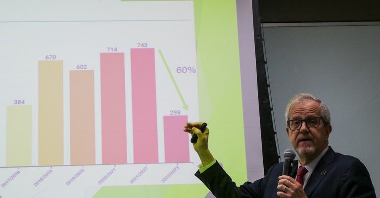 O desmatamento na Amazônia teve redução de 66% em julho, mês de seca considerado mais favorável a incêndios florestais. Um recorde histórico, jamais registrado no Sistema de Detecção de Desmatamento em Tempo Real (Deter). No período, foram registrados 500 km² de área degradada, contra 1.487 km² em julho de 2022. Os dados são mais baixos, também, em relação aos medidos em 2021 (1.498 km²), 2020 (1.659 km²), 2019 (2.255 km²) e 2018 (596 km²). As informações foram apresentadas nesta quinta-feira, 3/8, pelo Instituto Nacional de Pesquisas Espaciais (INPE), durante entrevista coletiva em Brasília.