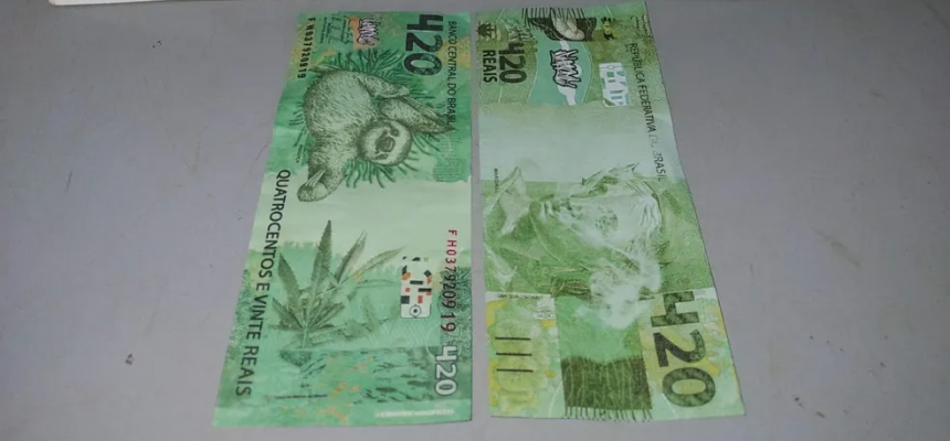 Já o dinheiro, foram apreendidos mais de R$ 930 em cédulas e duas notas de R$ 420, que foram produzidas pelos suspeitos e fazem referência à maconha. Além do valor inexistente para uma única cédula, o dinheiro também contava com a imagem de um bicho-preguiça.