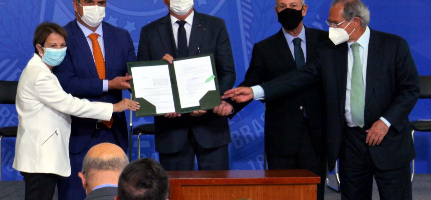 A MP que o presidente apresentou, ao lado dos ministros Paulo Guedes, Bento Albuquerque, Teresa Cristina e Ciro Nogueira, no Planalto, possibilita também que os postos usem a marca, chamadas de bandeira, de sua preferência.